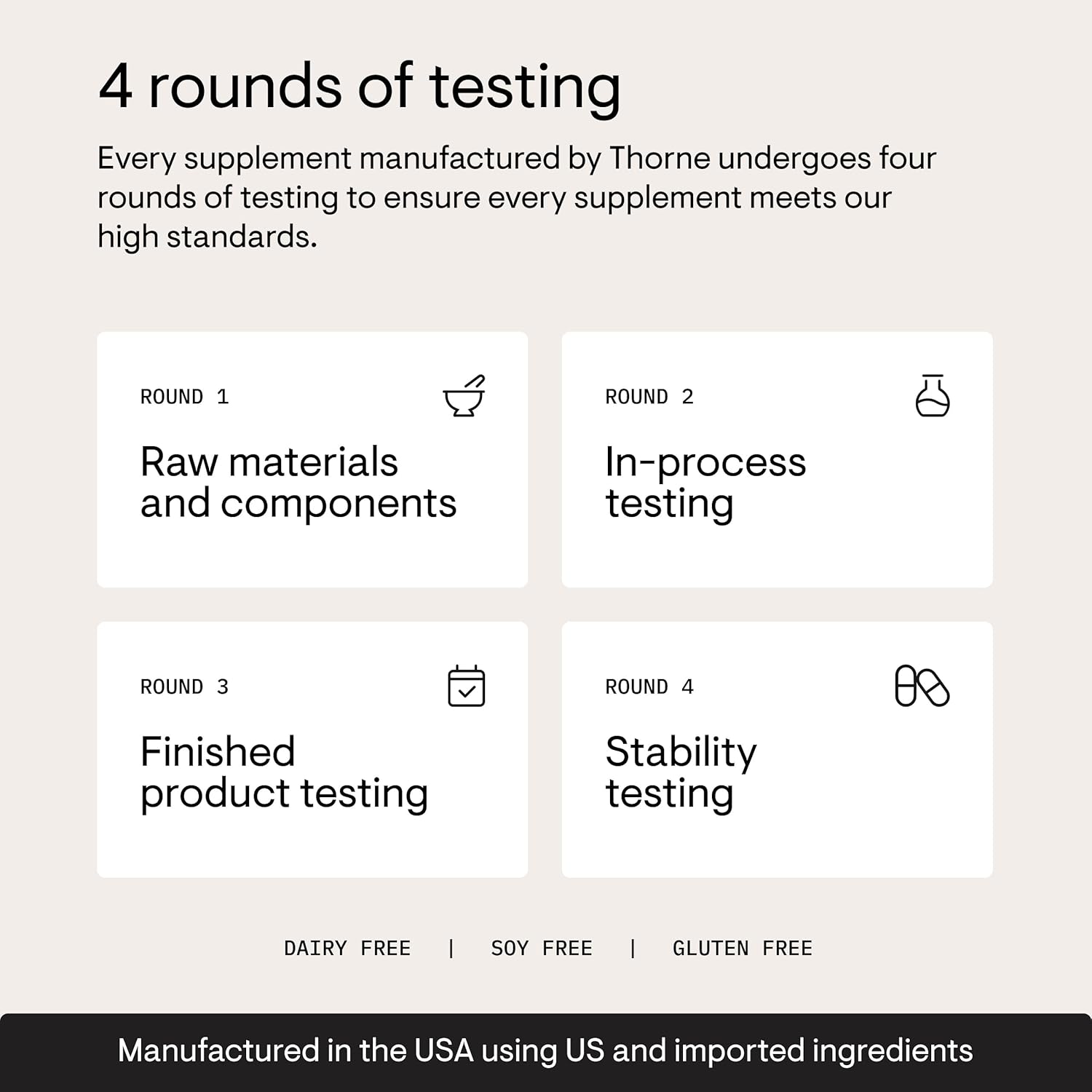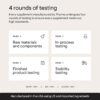 • 4 Rounds of Testing: Our state-of-the-art laboratories enable us to conduct 4 rounds of testing on every product, from analyzing the purity of raw materials to confirming the shelf life of finished formulas